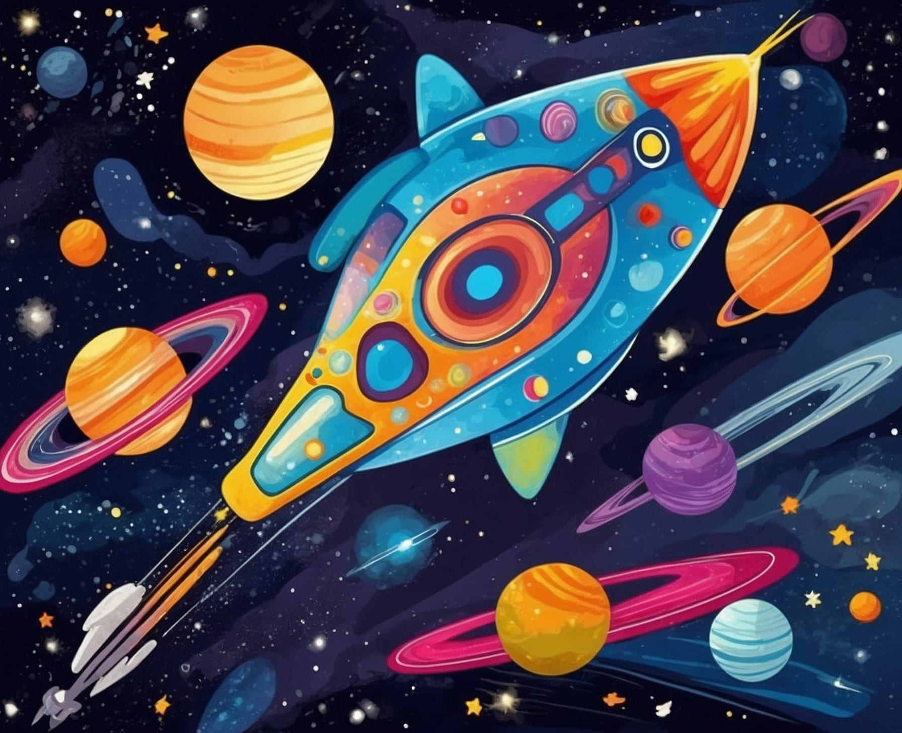 Vibrante ilustración cósmica de Jav Rubin. ¡Un must para tu pared!