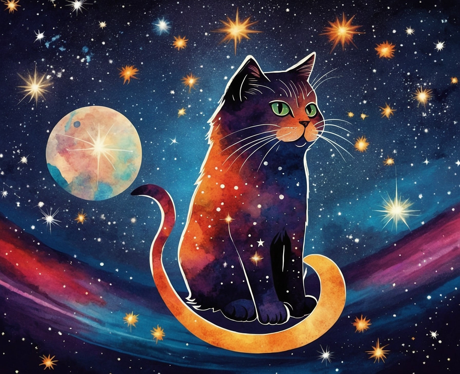 Ilustración única del gato cósmico explorador del espacio. ¡Imperdible!