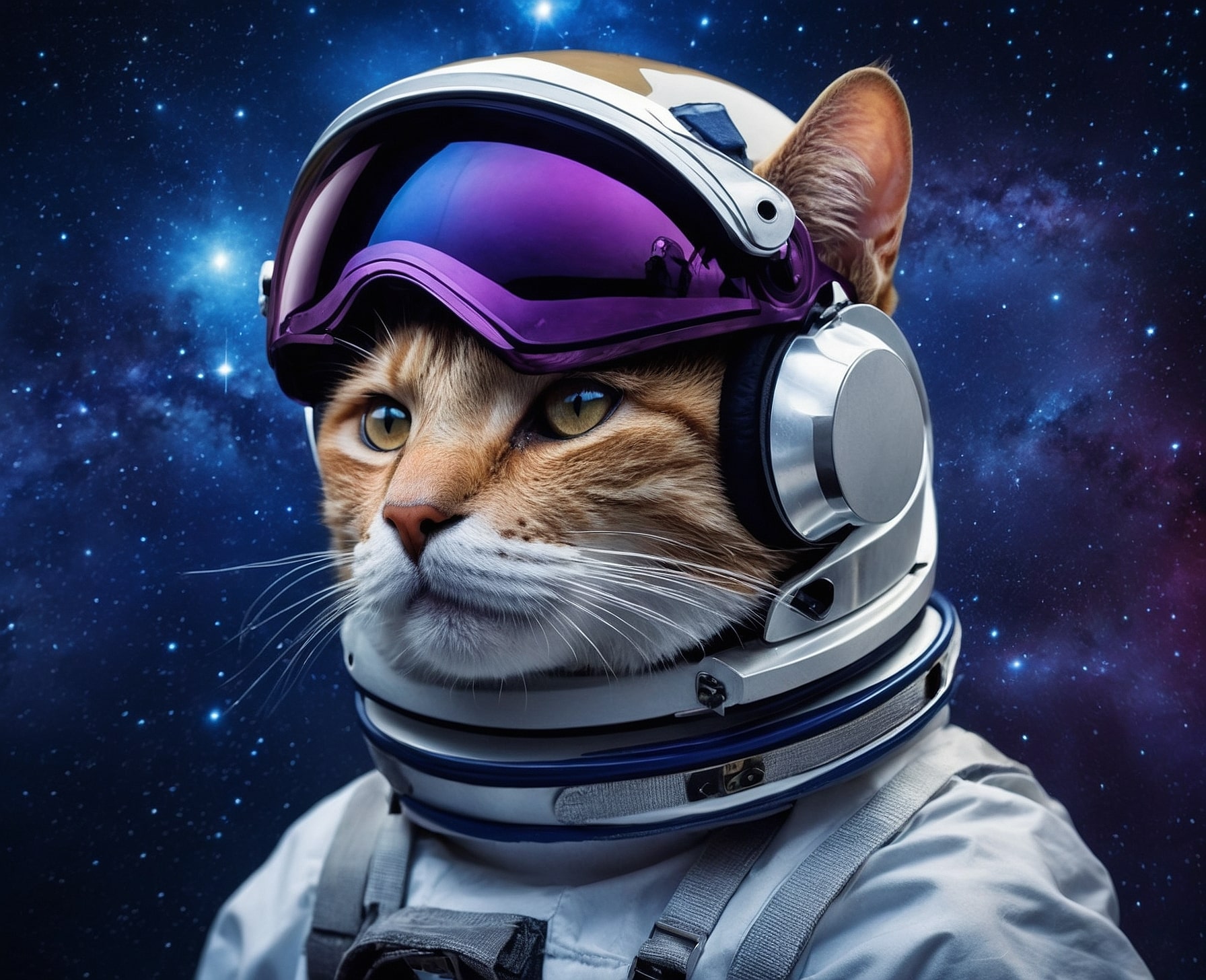 Ilustración original de un gato cósmico por Jav Rubín. Ideal para cualquier espacio.